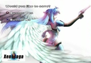 Aw, a save point. Thanks, game! Let’s take this opportunity to save and take a little break. For anyone that’s curious, the art shown here is exactly what’s on the cover of the game, so yet another reason KOS-MOS ceremoniously removing her helmet for the first time has absolutely no impact.