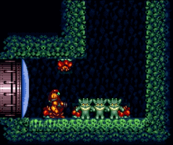Barring some gray doors that must be soaked in space pirate blood, Samus does not concern herself with the monsters of Zebes. As a result, “health” is less important in the “can I take a hit from that geega” sense and more a signifier of where not to go. Enter a room, and your energy tanks are draining faster than an industrial strength toilet? Way to go, you found a place you’re not supposed to be, maybe go try somewhere else. The challenge in Super Metroid is the navigation, not the minute to minute You have enough health for this?“monsters”. A Mega Man or Mario game is a race against your own hit points; a goomba or met may end a successful run right at the finish line simply due to suffering too much damage earlier in the level. A comparable situation in Super Metroid is not a zoomer, but a wall. Do you have the skills/items to overcome this obstacle? Do you know the best way to handle this situation? Ridley’s lair is not guarded by some invincible boss, it is guarded by boiling lava and an “impossible” jumping challenge. The challenge is learning what will make Samus “get there”, not memorizing an enemy’s pattern or remembering to save enough energy tanks.