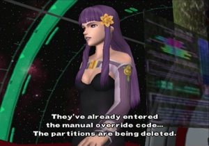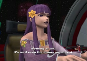 Had the missing planet been named before this point? It’s Ariadne. If you’re scrambling to remember where you’ve seen that name before, it was on a sign back during the Cherenkov/KOS-MOS flashback, so I guess Vector R&D had a branch there. This just goes to show that Shion is bad for planets.