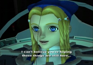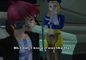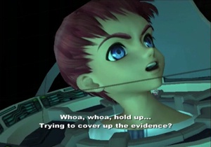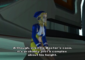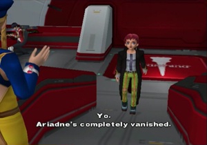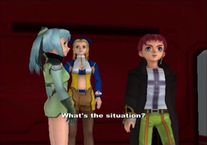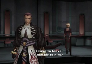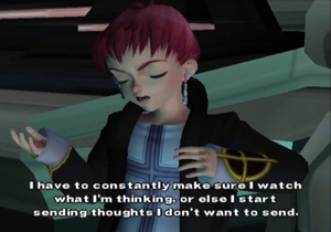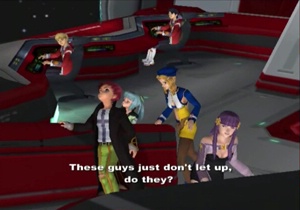 Previously on Xenosaga: Nearly the entire playable cast got together on the Elsa, so now they’re gonna sit around with their hands under their butts waiting for number six. Number six? Please take the stage.
