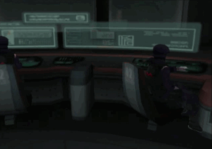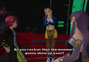 Anyway, Junior is out in space, while Mary (the blonde) and this purple haired woman are on support back in a nearby ship. You can already sort of see that this ship is more Woglinde shaped than the Elsa.