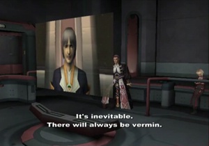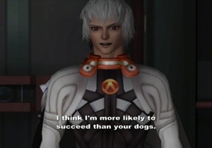 I absolutely identify this as a failing of Xenosaga, but I can see why it happened. Junior, really, is the first member of our party that seems like someone that would actively seek out a fight, and it’s perfectly natural to make his villain a flamboyant troll that will continually provoke the kid… but in a series crowded with “subtle” villains, those kind of antics are going to dominate.