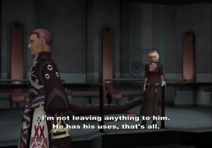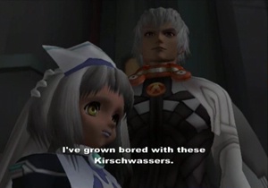 Take a look at the list of villains I just rattled off. Kevin operates in the shadows, and, for this entire game, you’re supposed to think he’s dead. KOS-MOS’s opposite hasn’t been introduced yet, and neither has Black Testament. Mizrahi is dead, and Random Experiment #231 is closer to Frankenstein’s Monster than ol’ Victor. And Wilhelm’s entire deal is that he’s operating as chief bad guy from the shadows, so he can’t prance around and yell his eeeeevil plans from up on high.