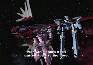 Alright, here’s our newbie, Junior, and he’s riding in a mech the size of an elephant, or something. Scale is terrible out in space, but this thing has a leg up on the meager AGWS I keep ignoring.