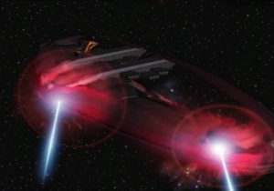 And a big, scary U-TIC battleship shows up and attempts to finish the job on the Woglinde.
