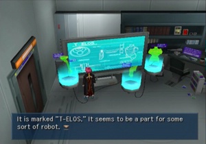 Here’s the subtle, important thing for this dungeon. U-TIC is working on some sort of T-ELOS robot. Huh, those parts look vaguely familiar.