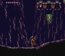 Wow, cool! We’re going to be able to rewind mistakes and… no, wait, this isn’t Braid, it’s a Super Nintendo game, we can’t do anything that complicated. Or, wait, the entire Demon Realm is looking pretty ratty, maybe the Time Crest allows Firebrand to jump back to earlier times and collect items in slightly different environments. Or is it more immediately practical, like “undoing” fallen platforms or… Nope, all wrong. The Time Crest allows Firebrand to simulate his older, stronger self, and… take double the hits.