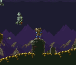 boss, so props to the corpse monster. Second place goes to Scula, who goes the extra mile and chucks his head at you. Man, does that guy get mad if you destroy his brain before his body. - Mode 7: Forgot to mention that the “overworld” of the previous games has now become a perfunctory Mode 7 flight mode that could easily be replaced by a Mega Man-esque level select screen. All that said, though, I did always have fun swooping around the Demon Realm, hoping to randomly land on a secret…