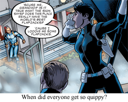 Patsy Walker HellcatBut then again, I suppose the reboot route is even worse. Batgirl works because it’s actually doing something new with its character, but the typical reboot? Never. For about six issues, there’s something new, or at least something that hasn’t been done within the last fifteen years (which is what qualifies as “new” in comics). Then the parade of “firsts” starts. First time mysterious villain is encountered. First time “gimmick” villain is defeated by finding gimmick’s weakness. First time sidekick appears. First time mentor objects because hero is “going too far”. It’s all the same beats, all over again, and five years later, those ‘firsts” have all been exhausted… so how about a reboot?