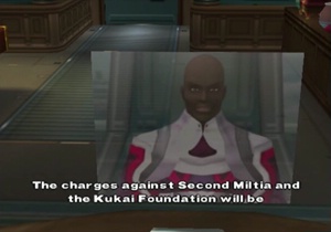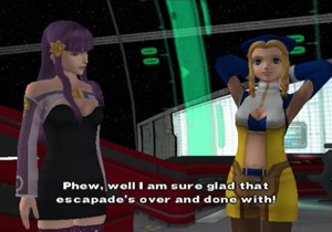 Gaignun (now with a woman on each arm), asks how it all went. I want to reiterate that, to everyone else in the universe, the party only “went through” downloading a file.
