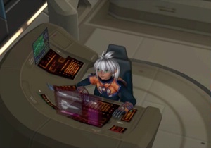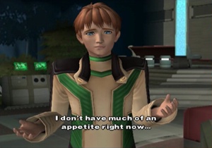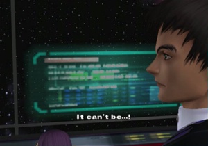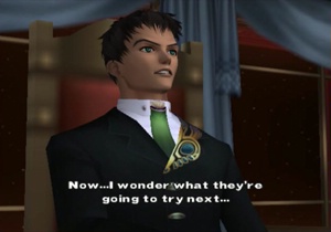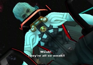 And we flash over to Wilhelm’s space pyramid. I appreciate that, while waiting for the good guys to screw everything up, the bad guys sit around playing holo-chess. Better than the usual Dark Emperor archetype, lounging on a throne and barking out orders for every cutscene. Oh, wait, Albedo…