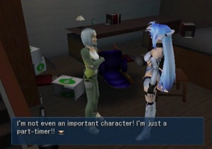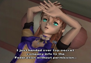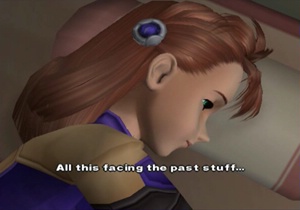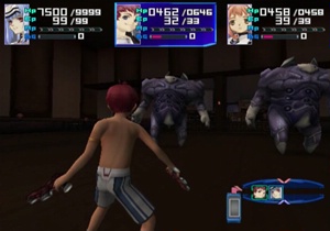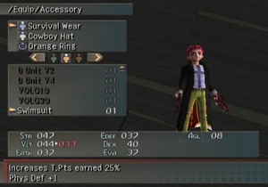 The swimsuit has the worst available defense in the game for a piece of body armor, but it ups your T.Pts earned by 25%. This… is marvelous, and you should do everything possible to max out Tech Points and earn faster, stronger techs. Unfortunately, it doesn’t “fit” Ziggy or KOS-MOS, else I’d have one of our hard hitters equipping it at all times. Given your average mook from this point in the game on isn’t much a threat by itself, it’s a good idea to always have someone wearing a swimsuit, just make sure you heal him/her after each battle.