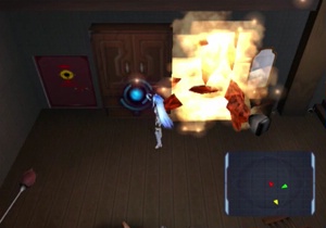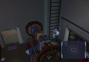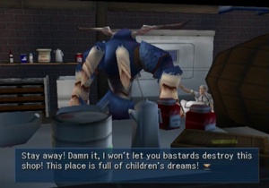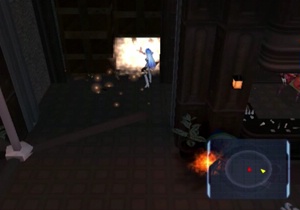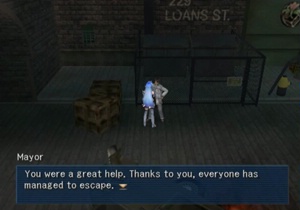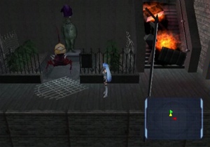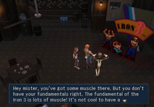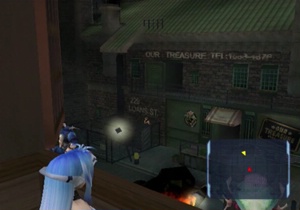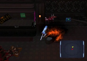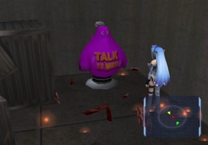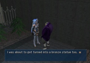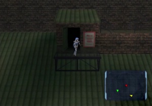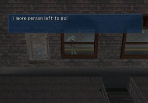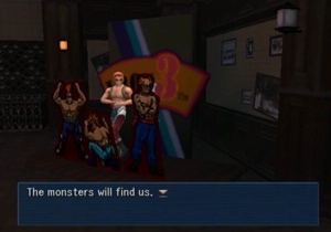 So, as already advertised, your goal is to find the thirteen survivors scattered about town. The east side of town is hide and seek, while the west side of town is basically a straightforward dungeon “maze” with survivors scattered along the path. A good example of east side fun is this fellow in the big, wide open bar, hiding behind/with the muscle men cutouts. You’d have to be a little bit blind to miss him, but the “challenge” is exploring this area at all while gnosis are creeping about.