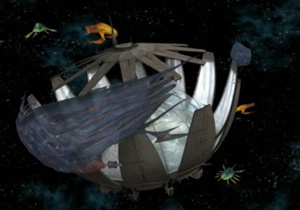 Hilbert Effect time! Note that if KOS-MOS wasn’t around, like one space whale could probably wipe out the entire colony. Now those dorks are solid, so they’ll bonk into that space bowl like giant goldfish.