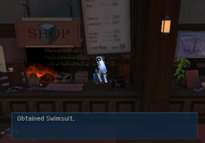 But before heading over to the safe, we loot the inn and find a swimsuit behind the counter. Score!