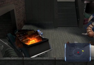 A building across the way that allows you to see that some dude is hiding in a dumpster under a very obvious roof ramp. Seems easy enough: on the next trip down that hot tin roof, hold left.