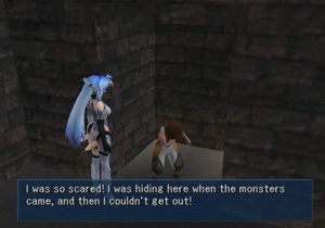 You can walk back to the inn very easily at this point and utilize its save point and rejigger your party in peace. I’m going to slide Shion into the party, because, like everyone else in the party (and a few moderately hearty infants) she has more HP than MOMO.