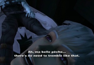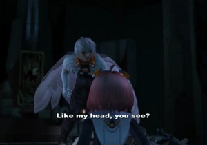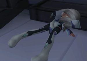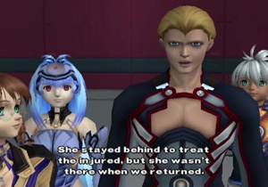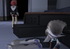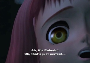 Oh, it’s Albedo again, and he’s cradling a dead Realian. Well, she might not be dead, but I don’t think her neck is supposed to do that.