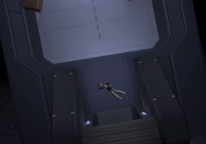 The whole party is on the way back to the Durandal, but MOMO is lingering, helping the injured back on the surface.