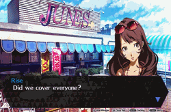 • Did you know? I actually mentioned the “Rise was supposed to be a punk” trivia in the previous Persona 4 entry, but I want to revisit it because without “Risette the idol”, it’s likely that this game would have had to find a whole new excuse for its existence. Maybe Yosuke gets bored and hooks up with a dance troupe, and the rest of the cast has to join in to save him? It would have at least been more interesting than what we got…
