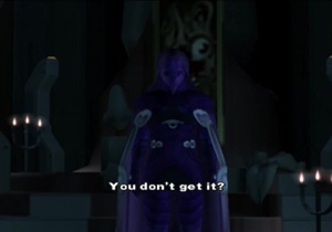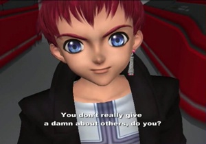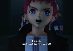 Junior is talking about Blue Virgil, but it’s pretty clear this is Xenosaga being clever again with Junior sorta talking about his reckless URTV side flipping out and nearly destroying the whole place. Who was that guy? Not me, nuh-uh.