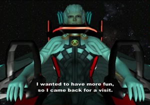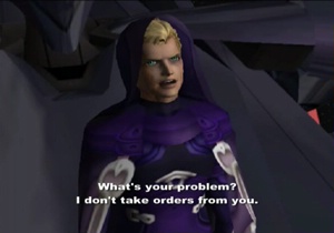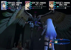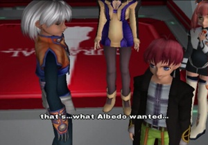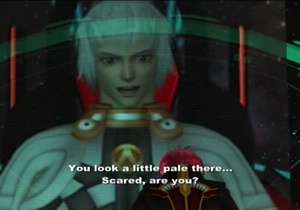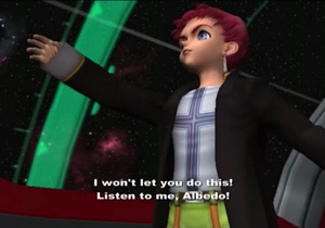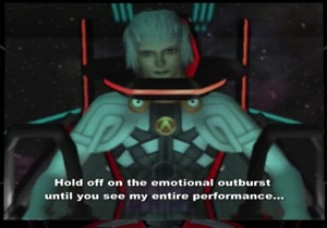 Previously on Xenosaga: Albedo tore the Y-Data out of MOMO’s mind from within the Song of Nephilim, so the party ran in to moderately inconvenience the villain and chase him off to like twelve feet away. Blue Virgil made the scene to keep everybody busy, though. We now resume with Blue Virgil ready to…