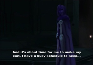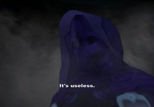 If you started the battle immediately or left and spent twelve hours grinding, you still resume this cutscene with Junior on his knees and the party exactly where they were standing when Albedo fled. You could claim that this means the “break” was a mere gameplay concession and “not canon”, or you can be cool and assume MOMO called a time out, and everyone carefully remembered exactly where they were before they left to have tea and crumpets. Blue Virgil complied, as he is nothing if not a gentleman.