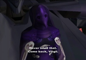 Blue Virgil addresses Shion directly, and asks her to come to… ugh, can we just say Old Miltia? Or is it Lost Jerusalem this time?