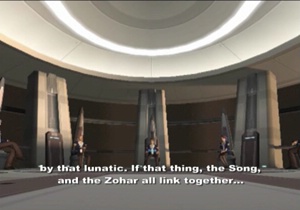 For anybody just playing Xenosaga, this appears to be the next (and last) in a series of increasingly gigantic ships, but for anyone that played through Xenogears, this is revelation on par with finding out Matches Malone is secretly named Bruce Wayne. The Merkabah (well, Merkavah, but, ya know, translations) was part of the ship featured at the absolute start of Xenogears, the gigantic vessel that sailed the stars with Deus and crashed on the Chu-Chu planet, thus kicking off the whole thousand-year plot of Xenogears. After nearly an entire game of “I could kinda sorta see where this fits in with Xenogears, maybe,” here we have a gigantic, glowing “here be important stuff” ship of significance. This is the Proto-Merkabah. It was built by Dr. Mizrahi. In a way, in an instant, Xenosaga’s “place” in Xenogears’ story is revealed.
