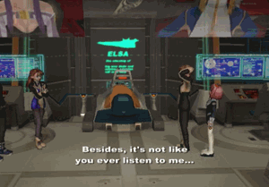 So, like The Song of Nephilim, you’ve got the Elsa as a home base, and, unlike The Song, you can leave whenever you’d like by talking to Captain Matthews. I do like that someone calls your JRPG party on being a JRPG party (“Seven days until Meteor hits? Let’s hit the Golden Saucer!”)