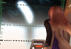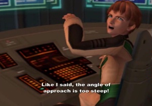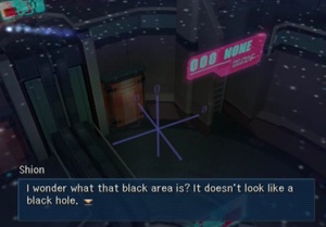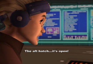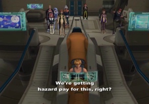 Falling on deaf ears, though, and the ship lifts off with Shion still hanging onto the (open) door. Might want to look into that before we get into the vacuum of space.
