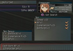 It seems only right to have Shion on my final team, so she gets the same Battle BC+1, Experience +25% (why not?), and AP+1, which adds an extra AP point every round. That can add up fast to allowing extra attacks.
