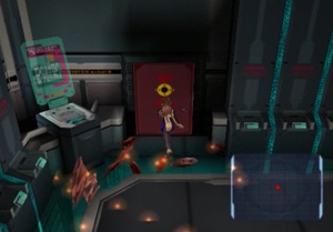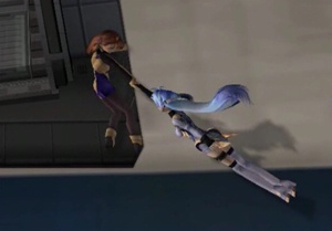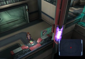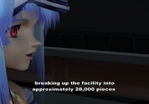 And KOS-MOS busts through the wall to jump directly toward Shion. KOS-MOS does have X-Ray Map vision and Shion-homing capabilities, so this kinda makes sense.