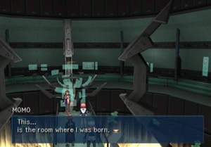 The first stop on the staircase is this… hm… looks like a Realian lab. Well, I guess that makes sense, this is where MOMO was activated.