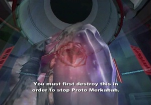 MOMO confirms that, because the Proto Merkabah was basically a floating MOMO factory, it won’t have any anti-space weapons… just piles and piles of mechanical enemies once we’re inside. Yay.