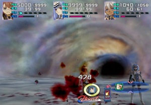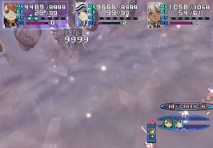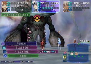 Additionally, while I didn’t capture it, I spent my spare Ether points trading Ether skills around. For instance, Shion’s multi-heal ether is now on KOS-MOS and chaos, so both can heal everybody at any time, and KOS-MOS has an ether skill that doubles ether power for a few rounds, so chaos yoinked that one to boost his own ether abilities.