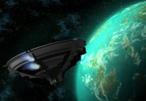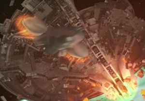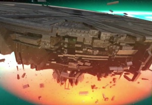 An exterior shot reveals that the Proto Merkabah has already begun separating into its thousands of pieces. Really convenient that there’s a button in there that does that.