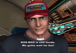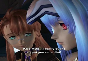 Fun fact: KOS-MOS lost her helmet. This is supposed to contradict that vision of the future where she still has her helmet… and obliterates a planet. The future is different now! Or something! NOBODY BUY KOS-MOS A NEW HAT!