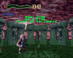 • Did you know? Primal Rage was the first fighting game to show a “percent of damage done” indicator after performing a combo. Goes to show that even in the smelliest turd, there still might be a peanut worth saving. That analogy just made be throw up a little.