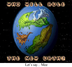 Speaking of endings, the plot of the game is that a meteor crashes on Earth, decimates civilization, awakens dinosaurs (dinosaur gods to be precise), arbitrarily moves the continents about, and irreparably destroys humanity’s ability to spell, as Earth becomes Urth. So a meteor destroys man and brings about dinosaurs? Man, those guys at Atari should get a prize. A “Being so Smart” prize. These dinosaur gods are awake and anxious to beat each other to death, because apparently that worked so well the last time they were animated.