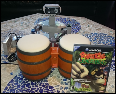 • Beat itA brief history of Bongos: There were three Donkey Konga rhythm games produced, though only two saw release stateside. With Donkey Kong Jungle Beat, that makes four games that support the DK Bongos peripheral. There was also supposed to be DK Barrel Blast, but that got ported to the Wii before it could gleam the ‘cube.