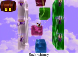 YummyI will admit that when the idea of a bongo-based platformer was first introduced, I was skeptical. But then I played the game, and, well, I don’t mind admitting when I’m wrong. It is an absolute blast to play this game, and it’s primarily because the game is so… physical. Your bongo playing turns DK into a barreling train, and it’s thrilling to build up BPM/speed and then slap both drums together to send the big guerilla flying. In a weird way, I feel that this gameplay is closest to what minecart stages throughout the ages have been trying to achieve, but failed every time. For practically the first time in gaming, there’s a significant feeling of momentum, that you’re not just pressing a direction on a joystick, you’re hammering that monkey to drum forward. It’s exhilarating, and DKJB offers an experience like none other. The “eat everything” finale of every stage is simply astounding.