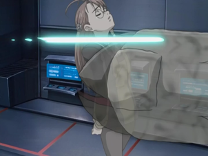 Number of changes with this episode. First of all, KOS-MOS distinctly goes out and grabs Shion/Allen/Virgil’s escape pod, and we completely skip that mother vs. daughter scene of Shion “convincing” KOS-MOS to bring them aboard through attempted suicide.
