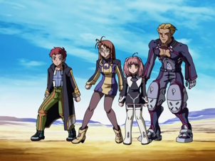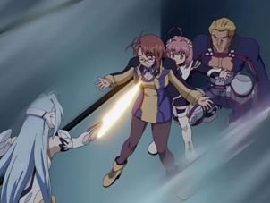 So, like the game, the “party” becomes KOS-MOS, Shion, Allen, and Virgil. Unlike the game, Virgil never gets that horrible (for everyone involved) “kamikaze Realian” scene, so, while we’ve established Virgil is a dick to Realians, he’s not a homicidal dick this time.