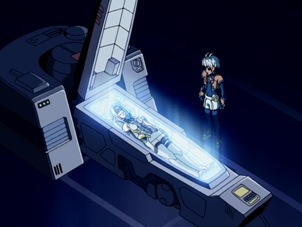 And KOS-MOS starts to awaken, and Allen, instead of literally quivering like in the game, is kind of cocksure that the “restraints” on KOS-MOS will hold. They don’t, and then he’s afraid, but the very idea of a confident Allen… chills.