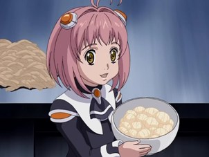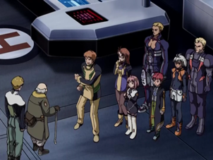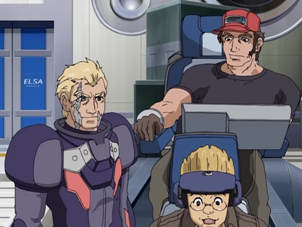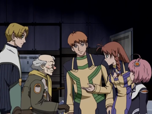 Dinner is limited to these guys. Somewhere in here, we learn that Ziggy rescued MOMO, and it is literally the Elsa’s job to ferry ZigMO back to Second Miltia. So, no, Ziggy’s boarding wasn’t an accident in this universe.