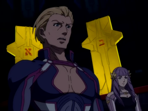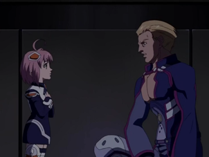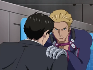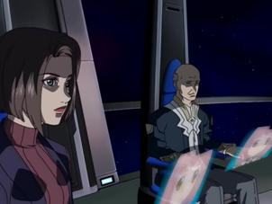Like in the game, the charges are a lie based on the Durandal attacking the Woglinde. Unlike in the game, Virgil is here, and he takes the whole thing personally, because his soldier buddies died fighting the gnosis, and now Space Government is ruining their sacrifice with these bogus charges. Nice development for the dead man walking.