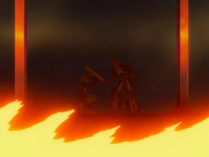 This whole daring escape from a dude with a fiery sword is reduced to, like, six frames.