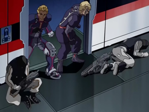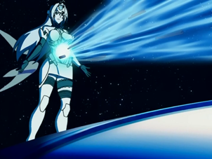 Same basic deal with KOS-MOS floating into the ship like a corpse, and the episode ends with the “threat” of KOS-MOS destroying the Elsa. In the game, it’s like a “cute” scene that lasts a minute, here they’re hanging a cliffhanger on whether or not KOS-MOS will destroy the ship because she’s bored.
