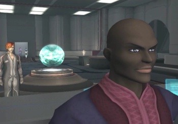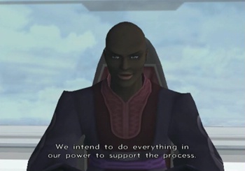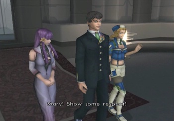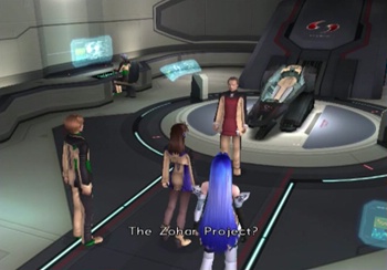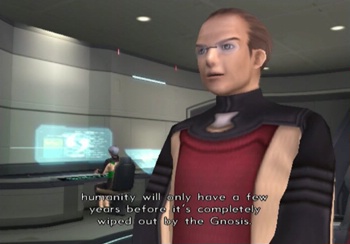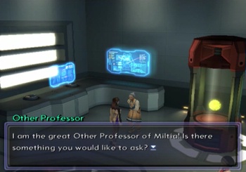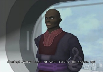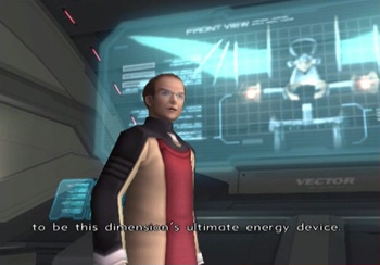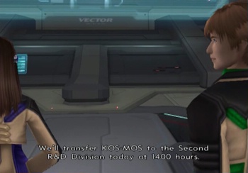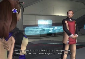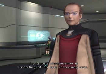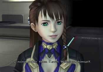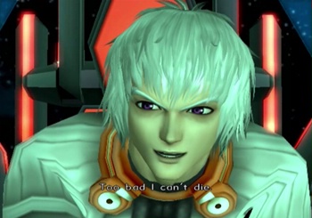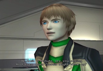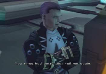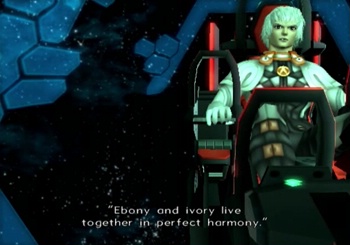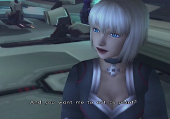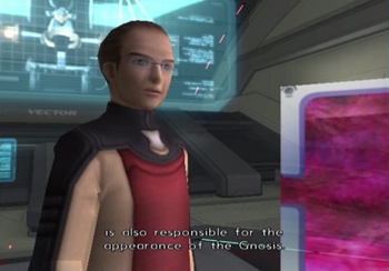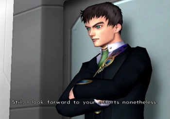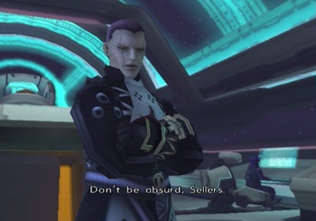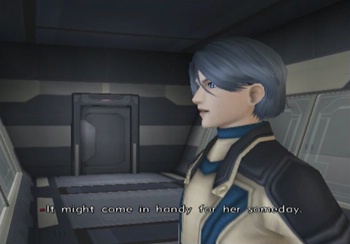 Sellers is U-TIC’s resident mad scientist, and while he has a minor role in both XS1 and XS2, he’ll come into his own story in Xenosaga Episode 3. He’s easy to spot, with his distinctive hairstyle, sunglasses, hoverchair, and… wait a minute… They named this guy Sellers? Sellers? Wow, where is the line between “homage” and “let’s just steal one of the most memorable characters in Western Cinema”? Come to think of it, they probably had to give Sellers a backstory in XS3, else Namco was gonna get sued.